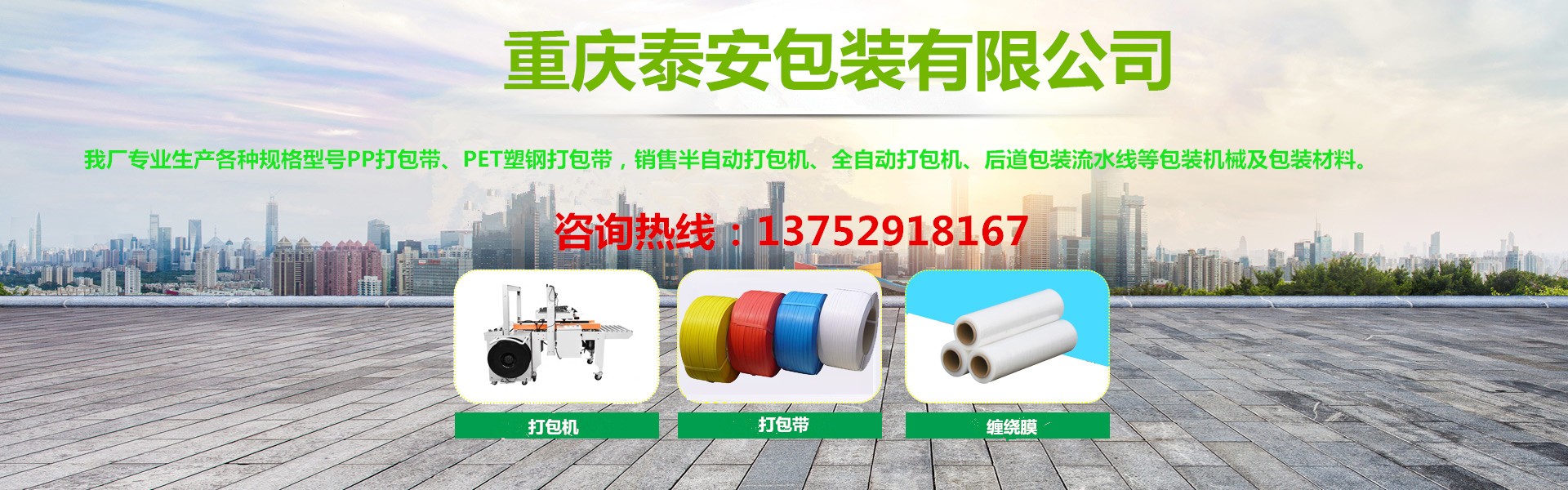 重慶泰安包裝有限公司(電話:13752918167)是專業生產各種打包帶、塑鋼帶、纏繞膜、膠帶,銷售打包機、纏繞機、封箱機、無人化流水線等各種包裝機械、包裝制品、包裝材料一體化的優(yōu)秀包裝企業,始終堅持“穩(wěn)步擴張、精益管理”的方針,堅持“換位思考,了解客戶需求,主動服務,超越客戶期待”的服務理念,以熱忱的服務、優(yōu)良的品質、靈活的機制、創(chuàng)新的技術,向各新老客戶提供最優(yōu)質、優(yōu)價的產品和服務,具有對系列產品自主研發(fā)創(chuàng)新能力,能夠獨立根據用戶要求制版打樣。近十年來受到廣大客戶的信任,產品銷售遍及全國各大城市,與客戶形成自由平等、互利互惠的戰(zhàn)略合作關系,平均年銷售量2000多噸。